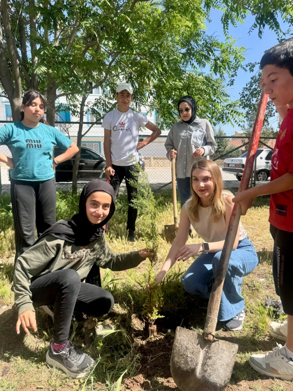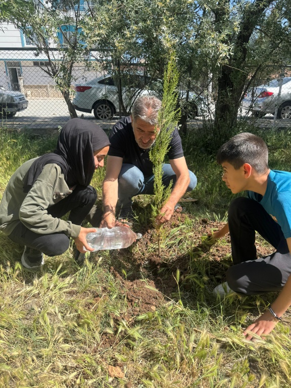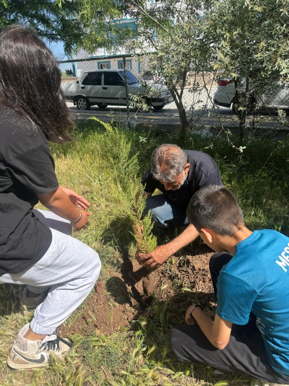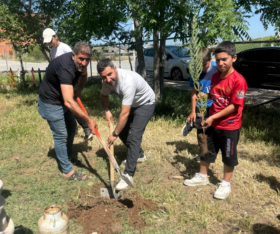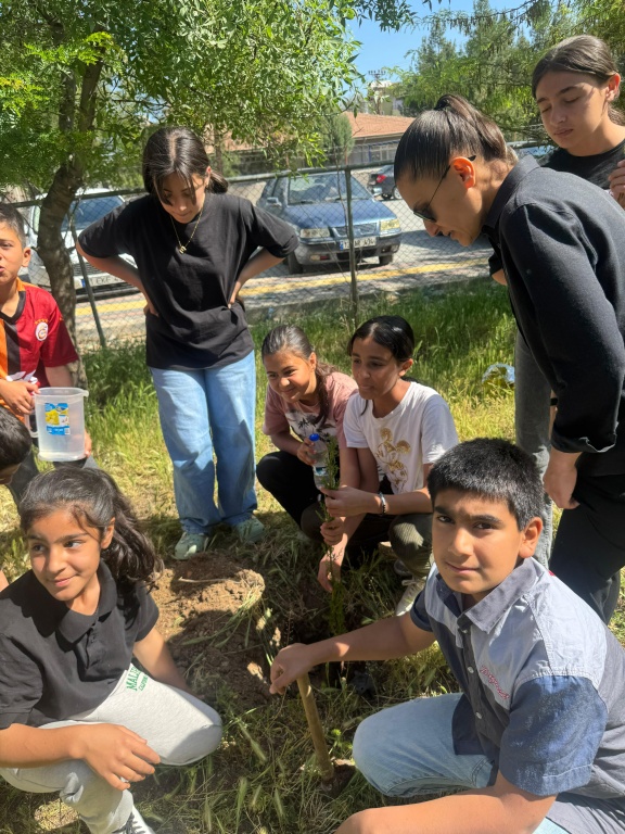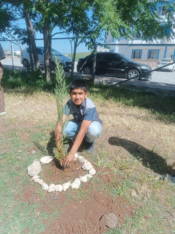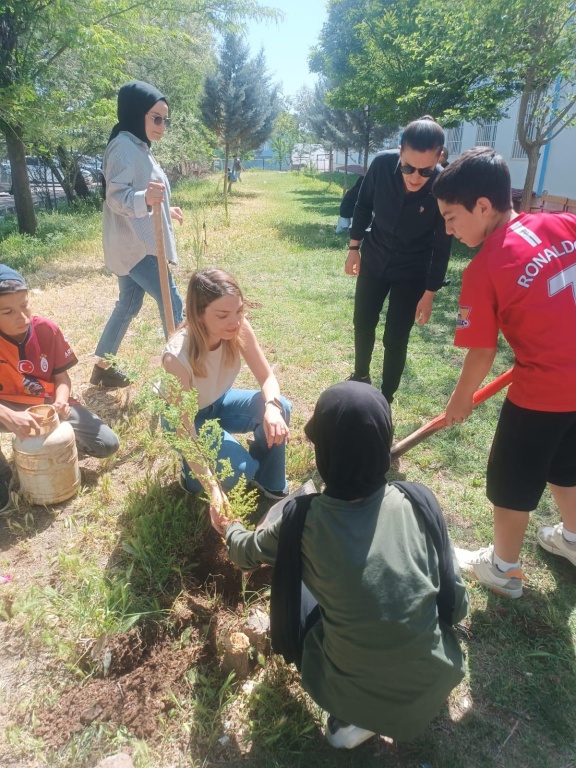 Okul müdür yardımcımız Nahil COŞACAK ve Türkçe öğretmenimiz Gülsüm ÇOŞKUN DEMİR'in yürüttüğü çalışmalar neticesinde okulumuza yeni fidanlar diktik. Öğretmen ve öğrencilerimizin katıldığı etkinlikte öğrencilere fidanın nasıl dikileceği ve cansuyu vermenin önemi anlatıldı.